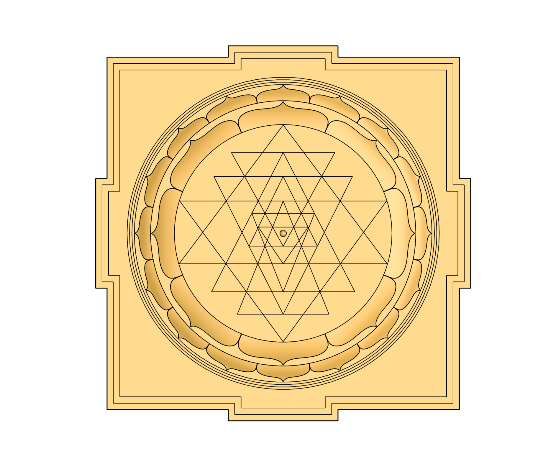 A sacred geometric map of consciousness where interpenetrating triangles represent the union of stillness and creative power, guiding awareness from outer multiplicity to the silent center of the Self.